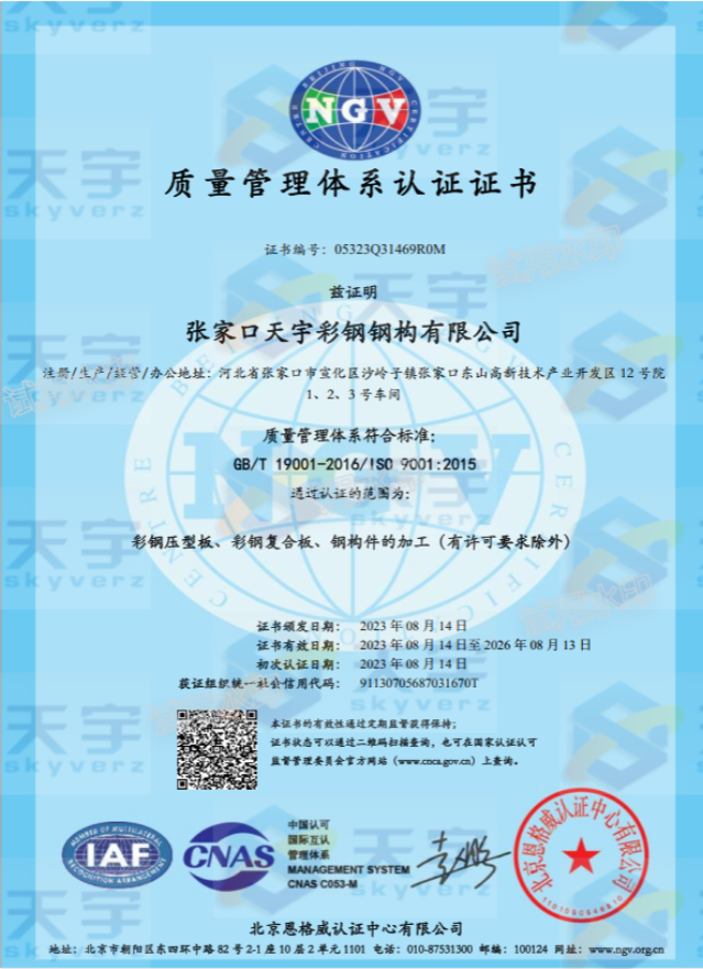 張家口天宇彩鋼鋼構(gòu)有限公司